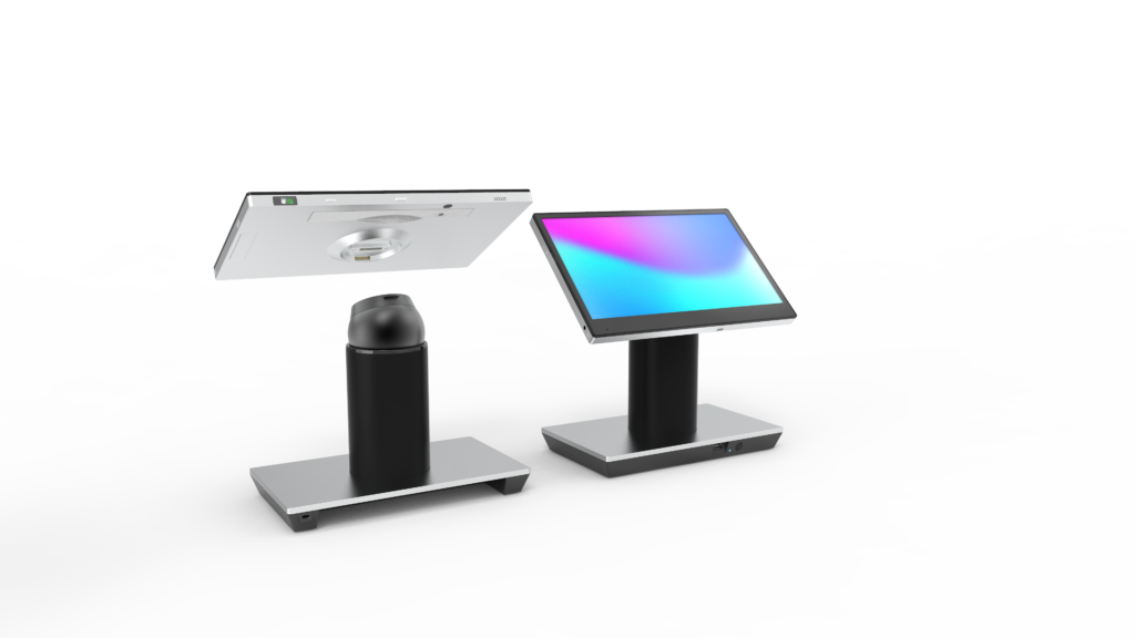 Offrant une flexibilité maximale, ces bornes sur pied sont réglables en hauteur et peuvent être positionnées librement dans un espace. Elles sont particulièrement utiles dans les salles de réception, les points de vente ou les salons professionnels, où elles peuvent être rapidement adaptées à différents contextes d'utilisation.